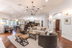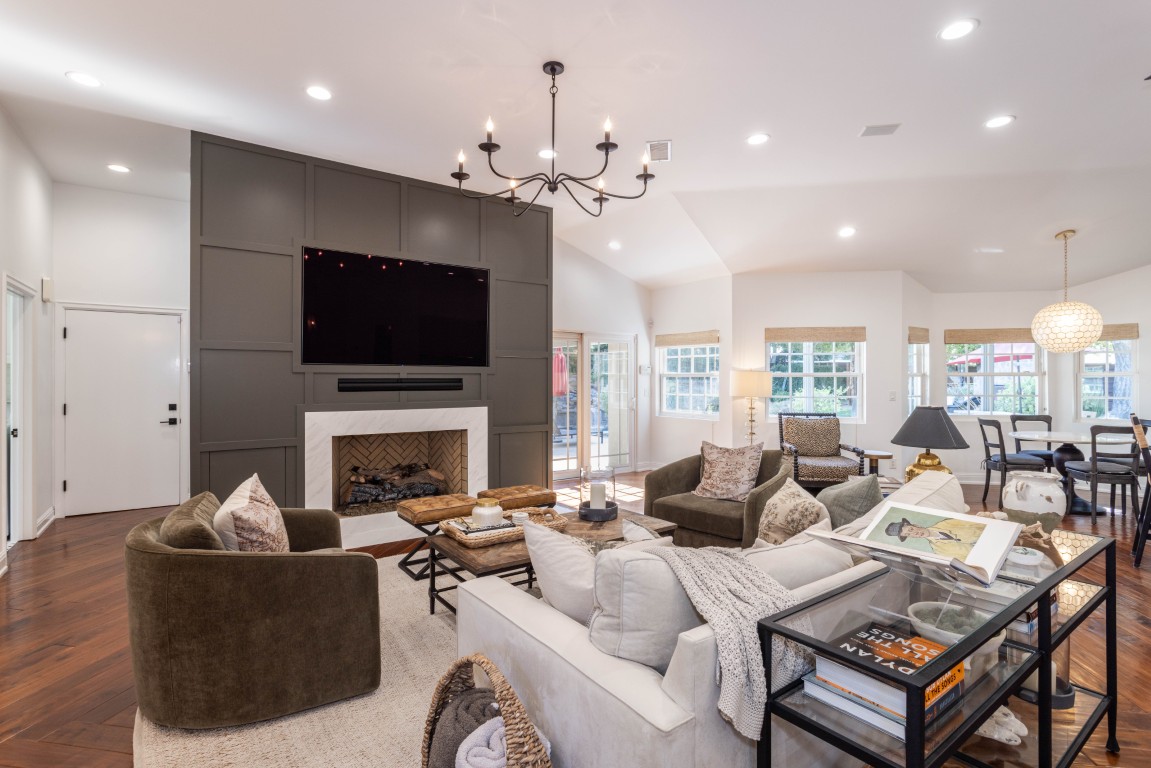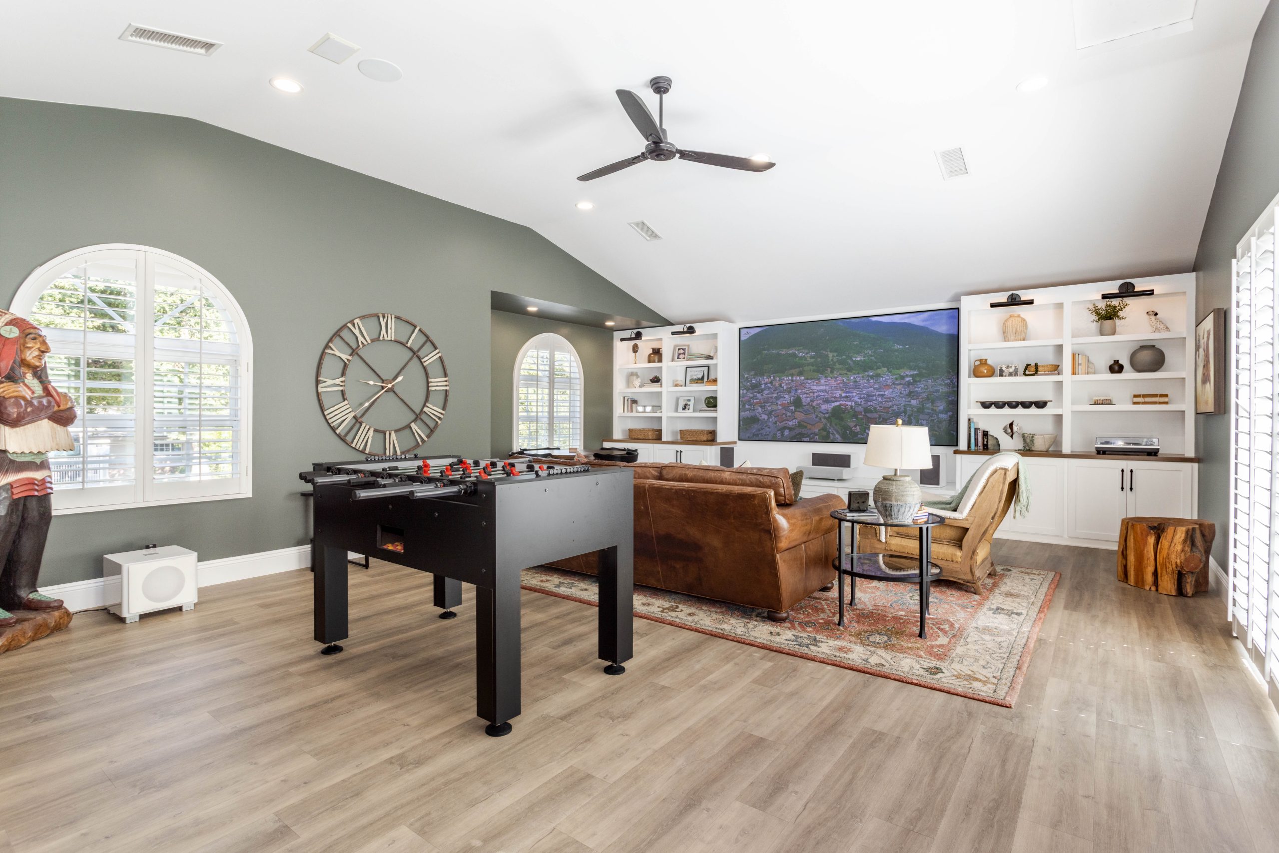 Interior Features: Primary suite with fireplace & spa-like bath 3 additional spacious bedrooms Game room doubles as 5th bedroom/in-law retreat with private bath, wet bar, patio deck & stairway to yard Designer kitchen with Viking range & high-end appliances Family room with massive wood-burning fireplace & 80” theater screen Custom wood floors, upscale formal dining, granite, tile, custom doors & lighting throughout Newer windows—light, bright, and stunning views of the yard