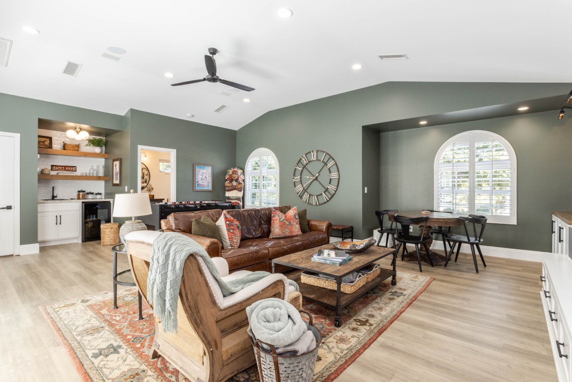Guest House & Extras: Fully functional 1BR/1BA guest unit with walk-in closet (multi-gen or rental potential) Batting cage for baseball fans 6 garage spaces + RV/boat/toy parking Newer AC units